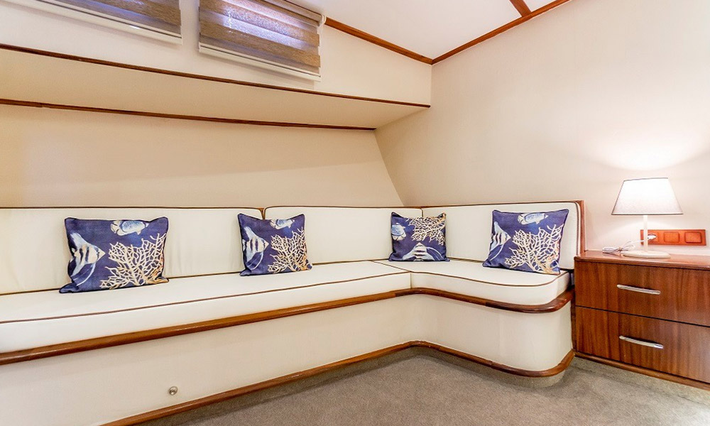 24 metre uzunluğa sahip olan Gulet Cartagena, geniş güverte alanı ve dengeli tasarımı sayesinde denizde ferah ve konforlu bir yaşam sunar. Toplam 4 kabine sahip olan gulet, 8 kişiye kadar konaklama kapasitesi ile aileler ve arkadaş grupları için uygundur.
