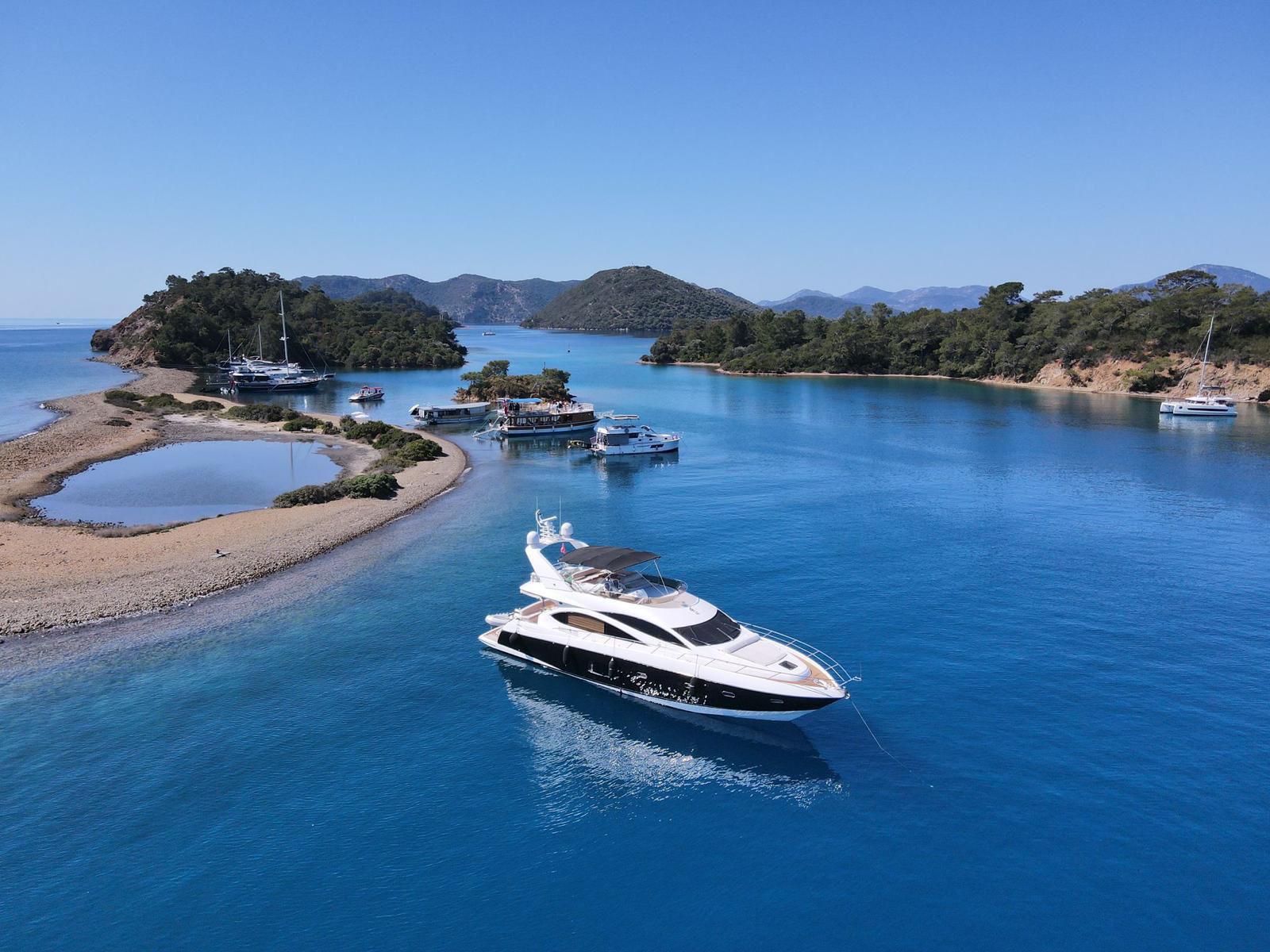 Motor Yacht London, Gocek and its surroundings is one of our ultra-luxury motor yacht options, specially offered for clients seeking premium yacht charter experiences. Combining comfort, elegance, and professional service, Motor Yacht London is the ideal choice for guests who wish to enjoy an exclusive blue voyage in the coves of Gocek.